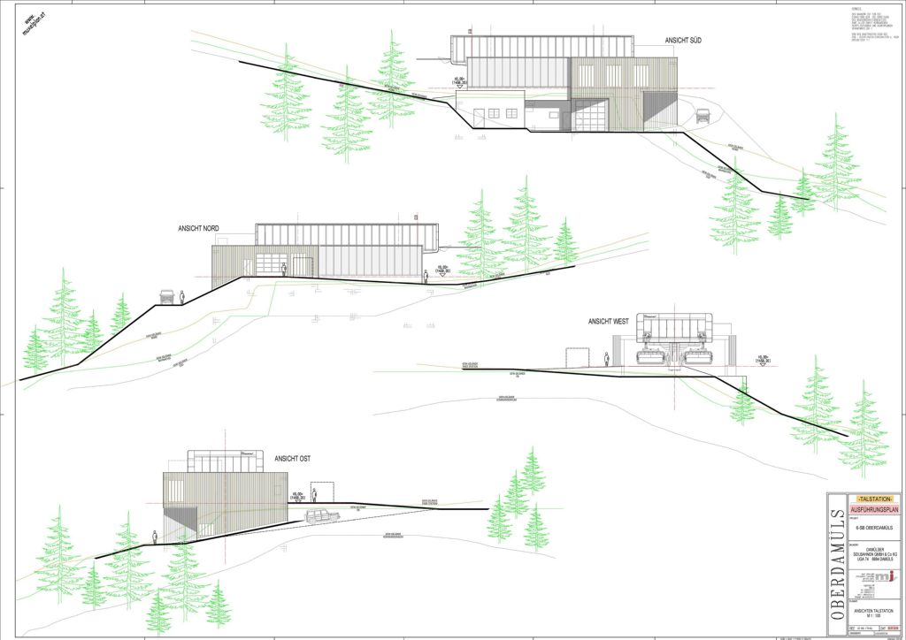 Neubau der Oberdamülsbahn ( neue D-Line 6er Bubble - Bahn ) anstelle der alten Doppelsesselbahn mit Stationsgaragierung in der Tal-und Bergstation. Die große Herausforerdung bei diesem Projekt ist die sehr kurze Bauzeit in dieser Höhenlage und die architektonische Einbettung der Bauwerke in die bestehende Landschaft, die sämtlichen Anforderungen seitens der Damülser Seilbahnen, Geschäftsführer Ing. Simma Markus und die des Anlagenbauers, der Firma Doppelmayr, zu vereinen.