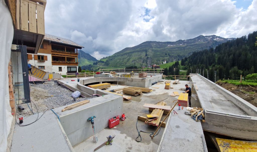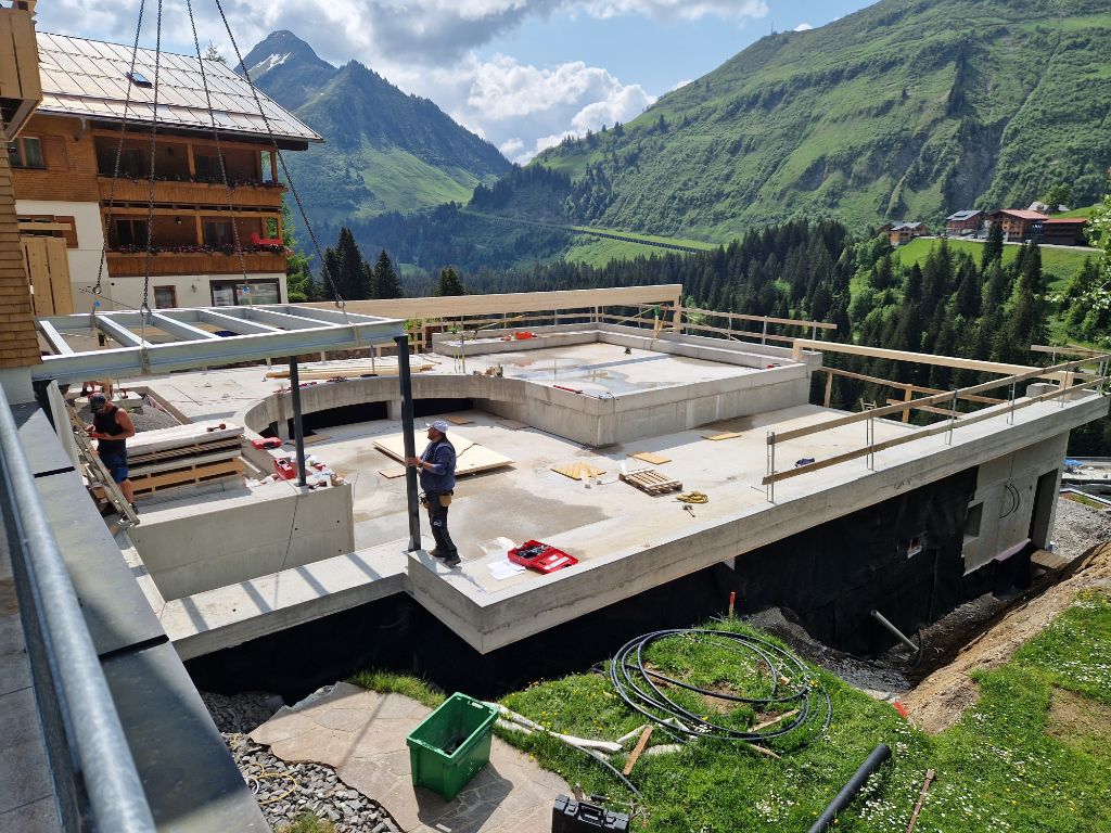 Baubeginn: April 2023 Baufertigstellung: Juli 2023 Bauherr:SBV Hotel Alpenblume, 6884 Damüls Planung und Bauleitung: Planungsbüro Muxel Johann GmbH / Muxel Robert