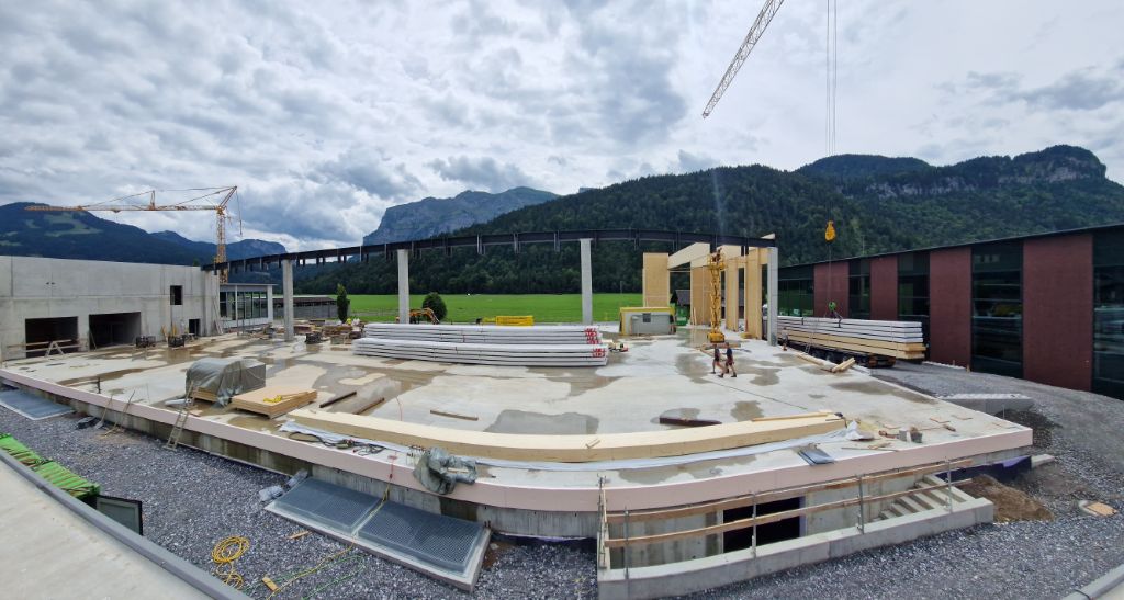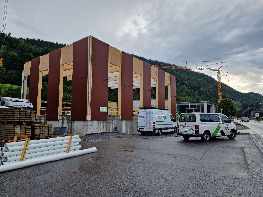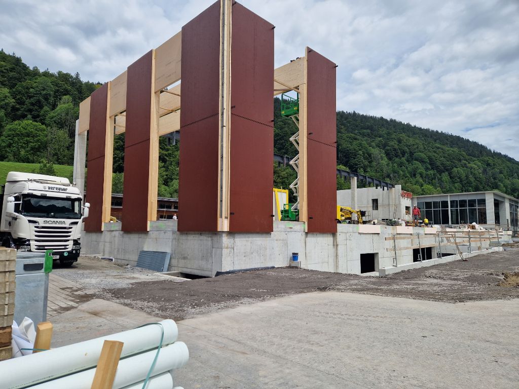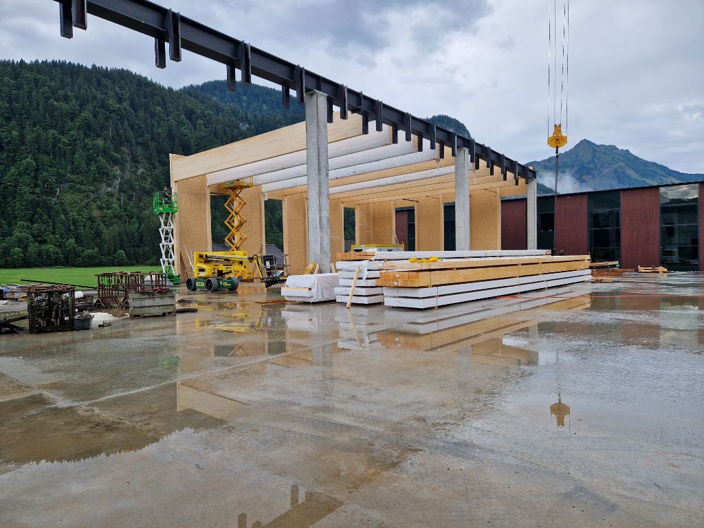 In Bizau entsteht derzeit eine weitere Produktionshalle mit ca. 28.000m³ umbautem Raum.