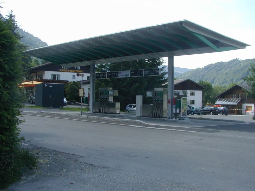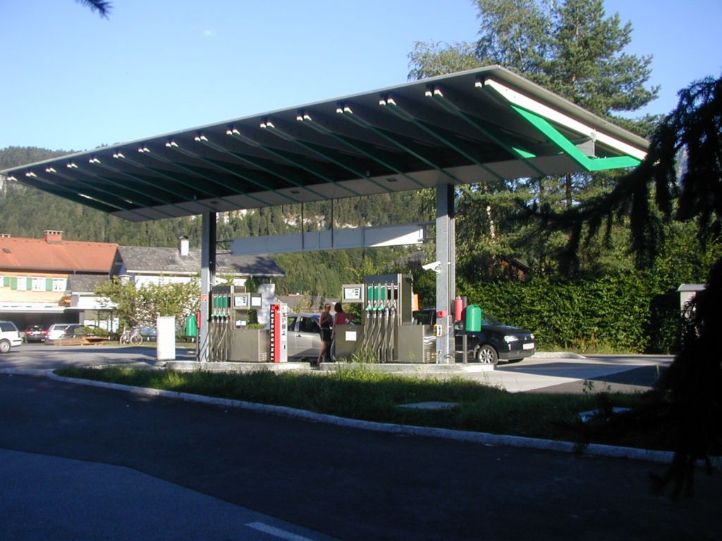 Auch Tankstellendächer sind in raffinierter Holzkonstruktion lösbar.