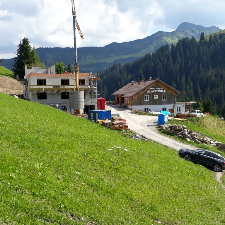 Direkt vis a vis vom Almstüble wird der Neubau Hotel Garni errichtet. 65 Gästebetten mit Privatwohnung und ca. 8 Personalbetten.