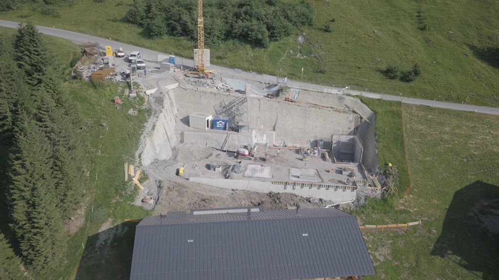 Neubau eines Appartementhauses ( Oben ) in Damüls zur gewerbl. Vermietung. Der Neubau umfasst 12 Wohnungen zur gewerbl. Vermietung mit zwei Tiefgaragengeschossen die über einen PKW-Aufzug zugänglich sind.