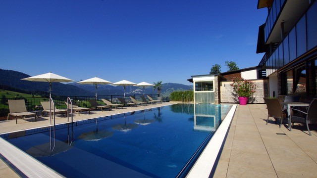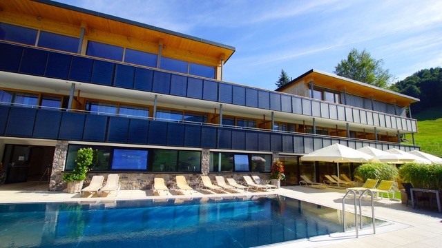 Neubau / Erweiterung Freibad, Behandlungsräume, Gästezimmer und Privatwohung beim Hotel St. Hubertus in Grossdorf mit wunderbarem Ausblick auf den Bregenzerwald.