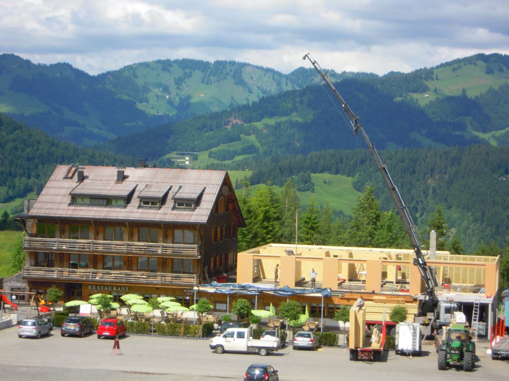 Beim Schetteregger Hof in Egg, Amagmach wurde im Bereich des bestehenden Restaurants, eine Aufstockung in Holzbauweise, durchgeführt.