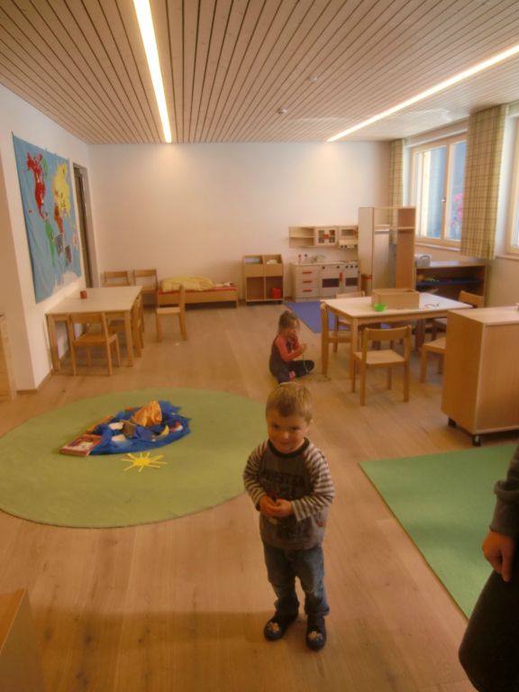 Das Mehrzweckhaus bietet Platz für: a. das neu umgestaltete Spargeschäft im Erdgeschoss. b. eine Vinothek im 1. Obergeschoss. c. ein modernes Friseurgeschäft. d. den Kindergarten der Gemeinde Damüls. e. zehn zeitgemäße Mitarbeiter-Kleinwohnungen im 2. Obergeschoss. f. einen Seminarraum im Dachgeschoss, welcher von der Gemeinde Damüls sowie von den Hotels genutzt werden kann.